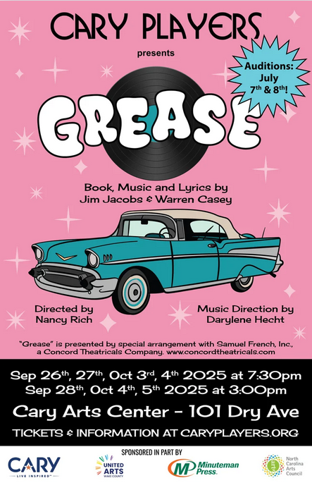 October 3 @7:30 PM, 4 @3 PM + 7:30 PM, 5 @ 3 pm – Cary Arts Center